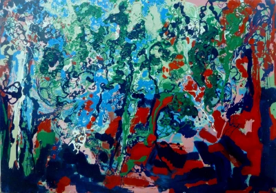 Es una pintura en representación de un bosque mental